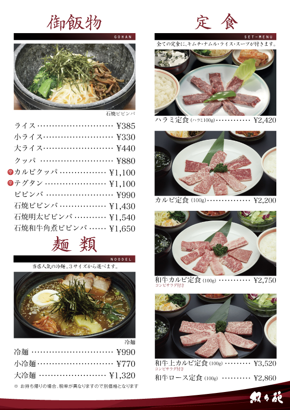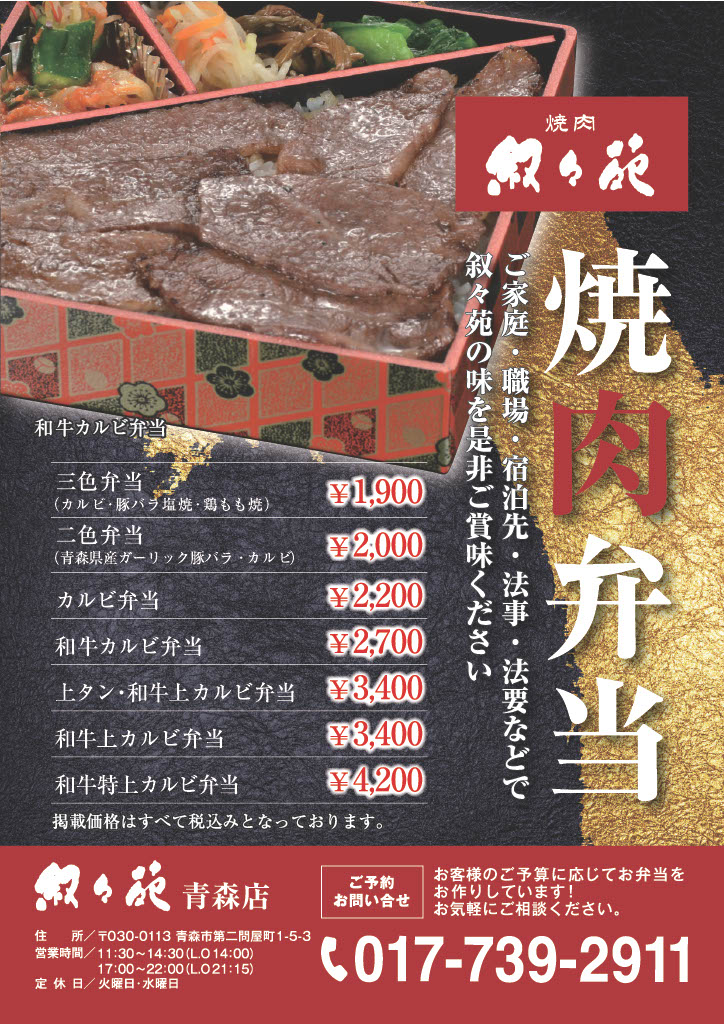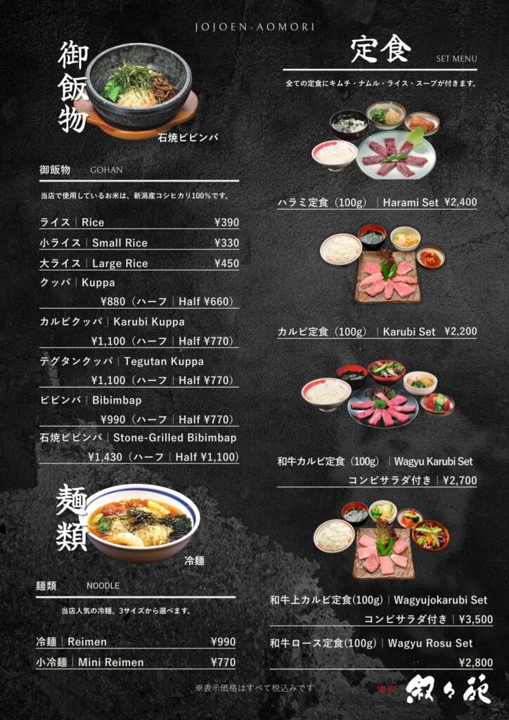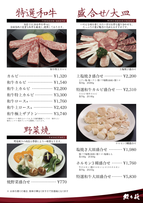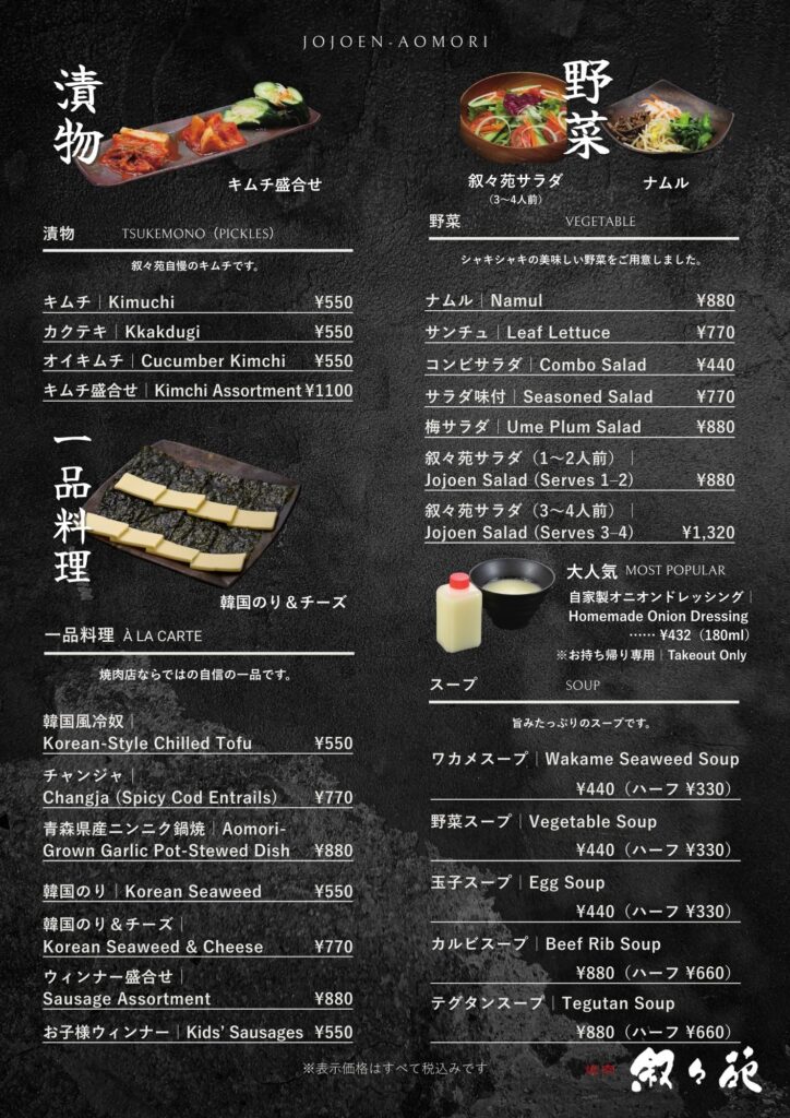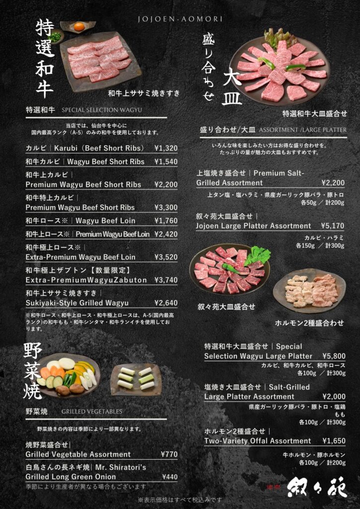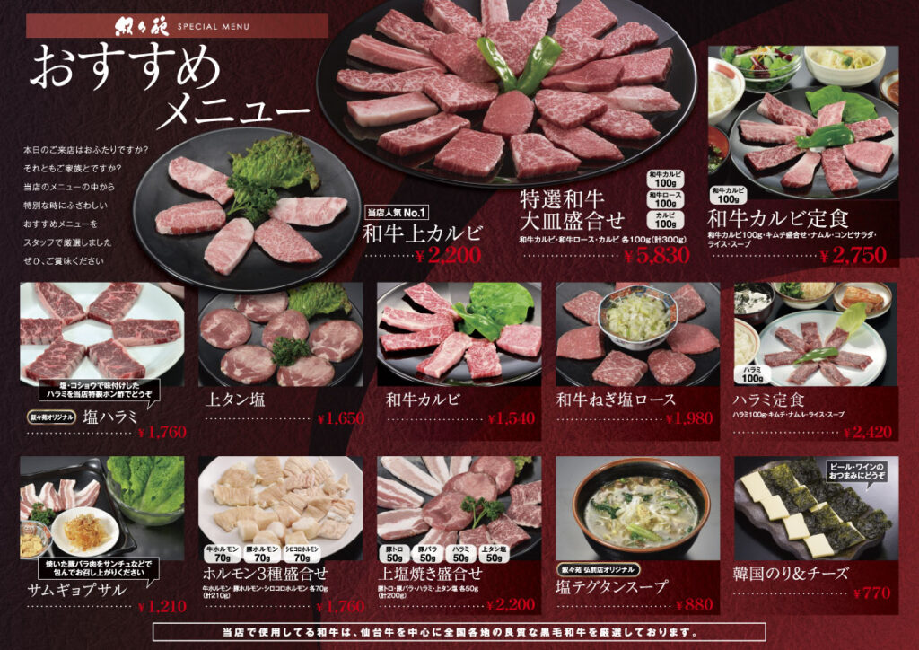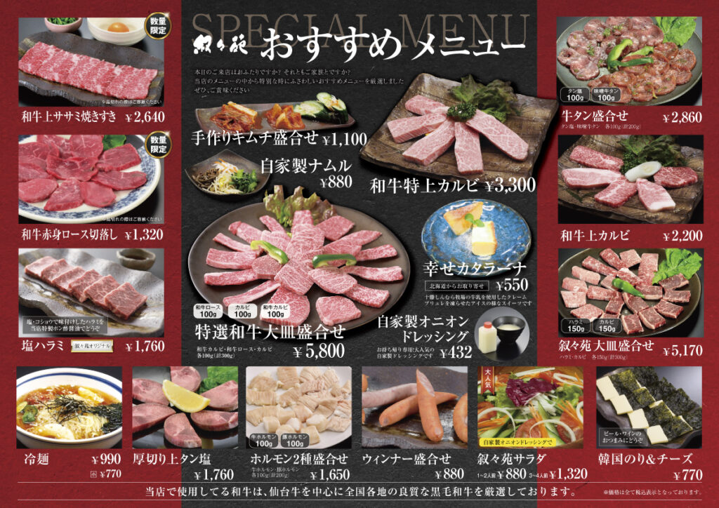 メニュー – 青森の焼肉店 叙々苑青森 | 青森・弘前