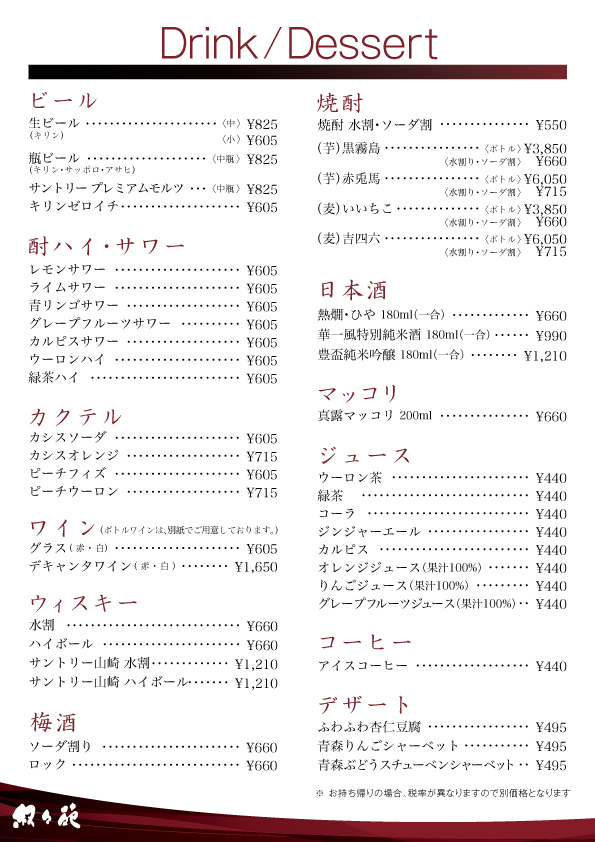 青森店グランドメニュー